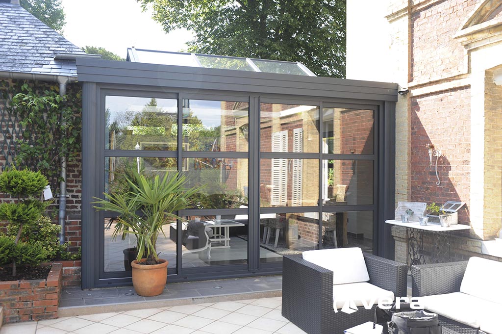 - Structures des vérandas entièrement en aluminium français de premier choix, y compris toitures plates (pas de risque de fissuration liés à des matériaux différents)